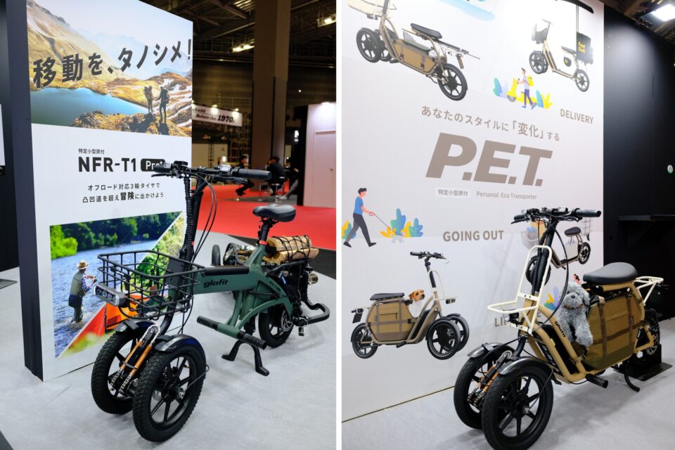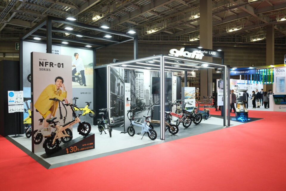 JMS2025の会場には、glafitのブースも登場。人気の特定小型原動機付自転車(以下、「特定小型原付」)「NFR-01シリーズ」、大阪・関西万博で展示・デモンストレーション走行を行った四輪型特定小型原付「WAKU MOBI(ワクモビ)」、そして今回初披露となる「GFRシリーズ」の最新モデルなど、glafitが展開する次世代モビリティが勢ぞろいしました。