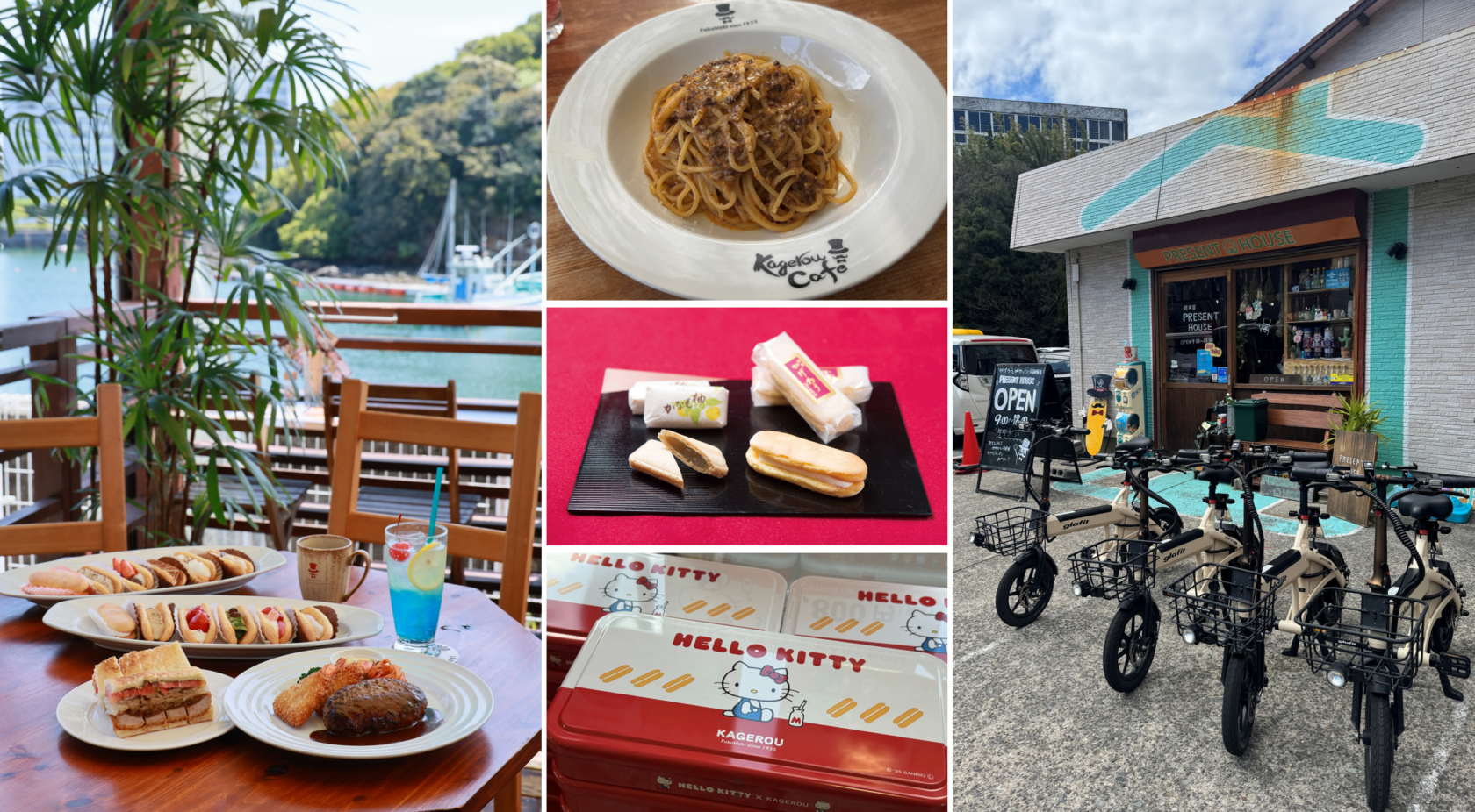 PRESENT HOUSEを貸出起点とするこのコースでは、白浜らしい甘味、海辺の景色、気ままな寄り道を一度に楽しめます。Kagerou Caféで本店限定の「生かげろう」を味わったあと、海岸線へ出れば、ホテル川久、江津良海岸、円月島と、白浜を象徴する景色が続きます。気になった場所でふと止まり、写真を撮ったり景色を眺めたりできる自由度は、WANDERIDE®ならでは。目的地へ一直線に向かうのではなく、途中の時間そのものが思い出になるコースです。