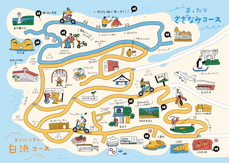 さらに今回、WANDERIDE®での街巡りをより楽しめるよう、白浜のおすすめスポットを紹介する「WANDERMAP第1弾」も完成しました。モビリティとマップコンテンツを組み合わせることで、目的地への移動にとどまらず、白浜の街そのものを“巡って楽しむ”体験へと進化させていきます。